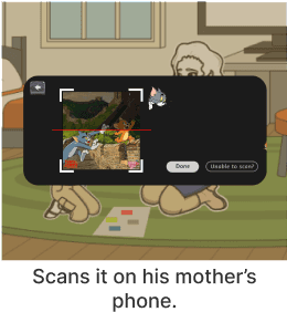 Scans it on his mother’s phone.