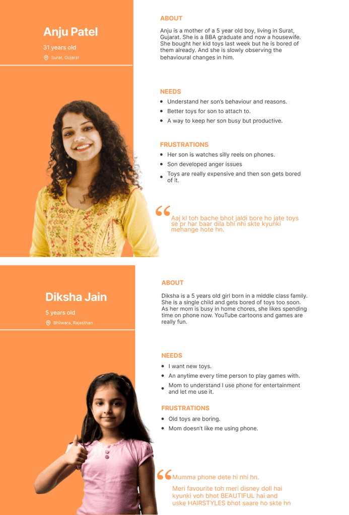Anju is a mother of a 5 year old boy, living in Surat, Gujarat. She is a BBA graduate and now a housewife. She bought her kid toys last week but he is bored of them already. And she is slowly observing the behavioural changes in him.